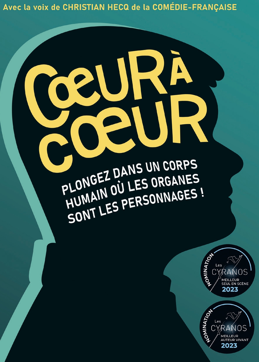Un seul en scène à mi-chemin entre le film d’animation «Vice-Versa» et «Il était une fois… La Vie» ! Dans un corps humain, un cœur passionné, un cerveau un peu trop réfléchi et un tube digestif très peureux tenteront de faire équipe pour que leur « hôte », Guillaume, soit le plus épanoui possible… Mais la route est sinueuse et les événements de sa vie les mettront à l’épreuve, quitte à créer des situations absurdes et décalées… Un seul en scène drôle et touchant de William Rageau, avec la collaboration à la mise en scène de Nicolas Laurent, qui nous parle d’amitié, de résilience et d’amour, avec beaucoup d’humour !