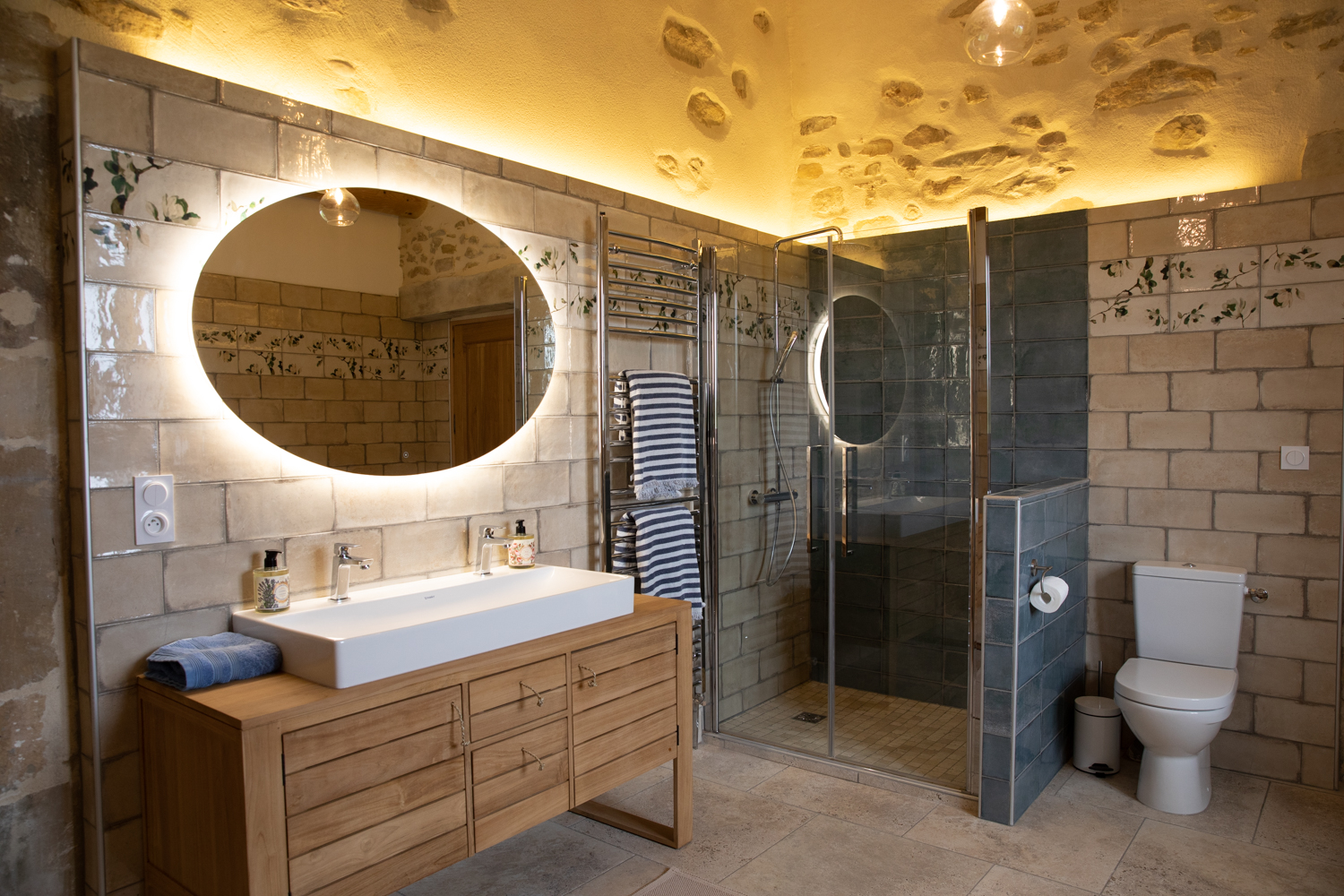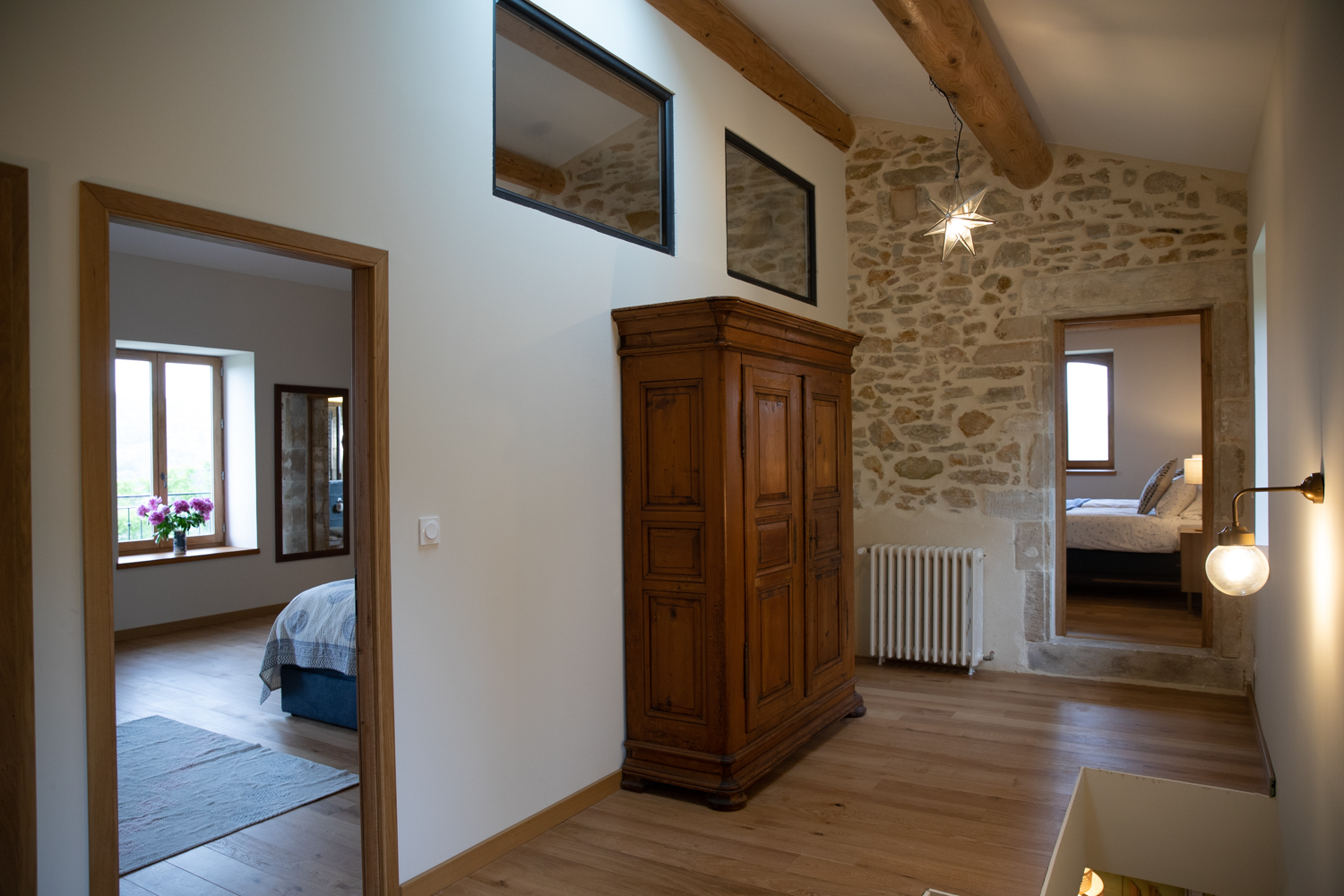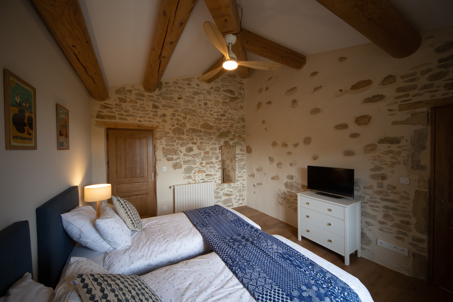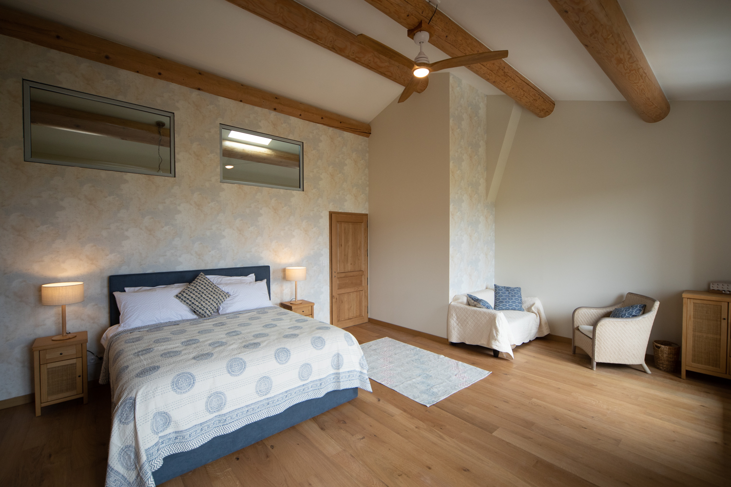 Große, hochwertige Unterkunft mit einem oder zwei Schlafzimmern, ideal für einen romantischen Aufenthalt oder einen Familienurlaub, mit höchstem Luxus und Komfort. Komplett geschmackvoll renoviert und im zweiten Stock unseres Mas gelegen.