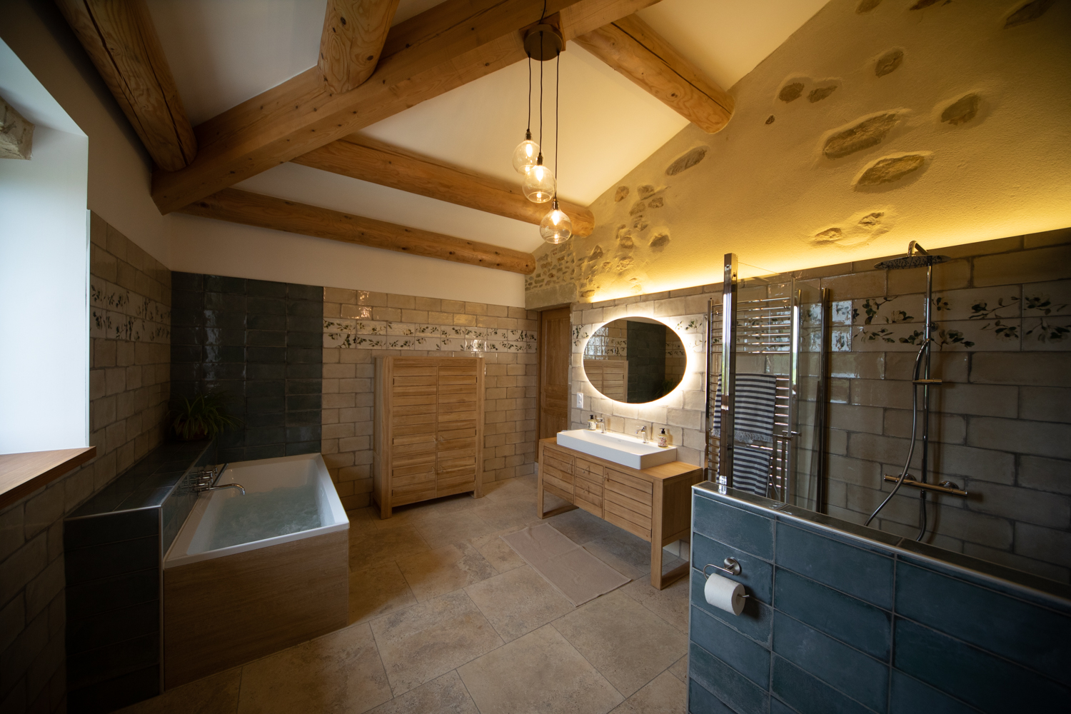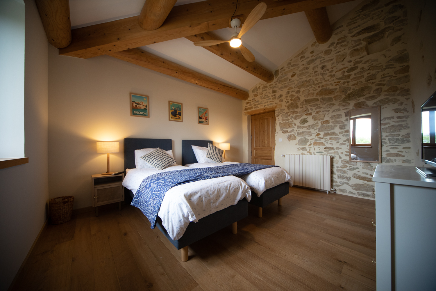 Auf einer Fläche von 90 m², vollständig renoviert unter Berücksichtigung von Stein und Holz, bietet die Unterkunft zwei große Schlafzimmer: ein 30 m² großes Hauptschlafzimmer mit Blick auf den Mont Ventoux, ein 16 m² großes zweites Schlafzimmer mit freiem Blick auf den Wald, ein geräumiges 15 m² großes Badezimmer (Dusche, Whirlpool‑Badewanne, WC, Doppelwaschbecken) sowie eine separate Toilette. Der Eingang ist privat und unabhängig.
