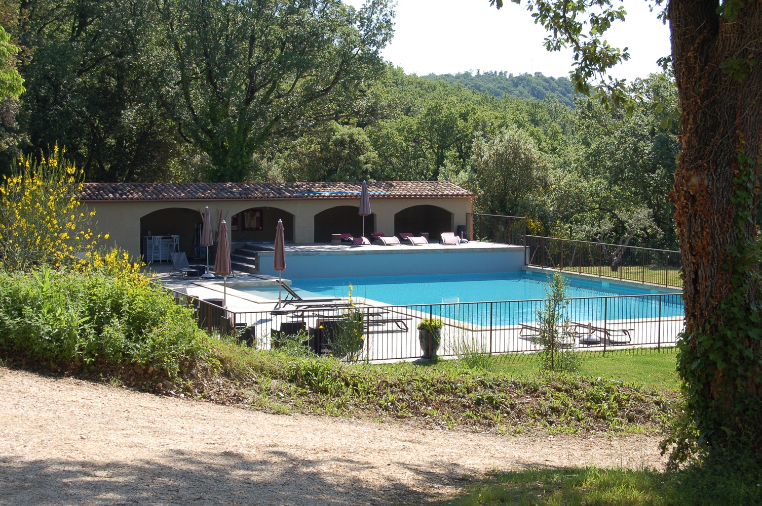 Large swimming pool and poolhouse