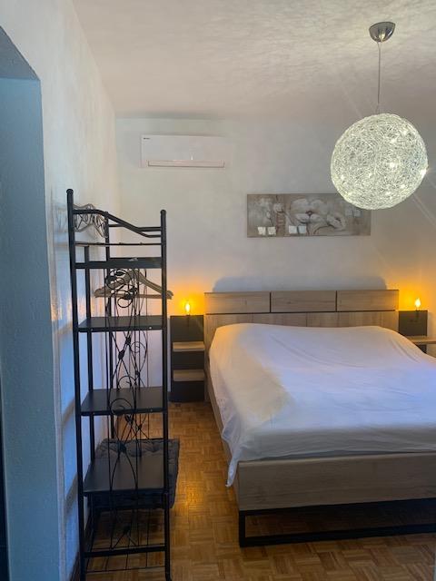 The 45 m² Les Cèdres flat on the garden level is self-contained and the only accommodation. It comprises two rooms: a living room, a fully-equipped kitchen, a master bedroom with king-size bed and en suite shower room/WC – and 1 separate 90×180 Italian shower.