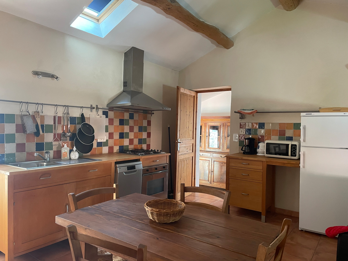 Our comfortable 60 m² cottage, with its preserved Provençal style, has everything you need for an unforgettable holiday for 4 people: a spacious living room with fully equipped kitchen, 1 bedroom (160×200 cm bed) and a double sofa bed in the living room, bed linens and towels provided (included in the price), a bathroom (shower + toilet), a fully equipped kitchen, and a private balcony.
