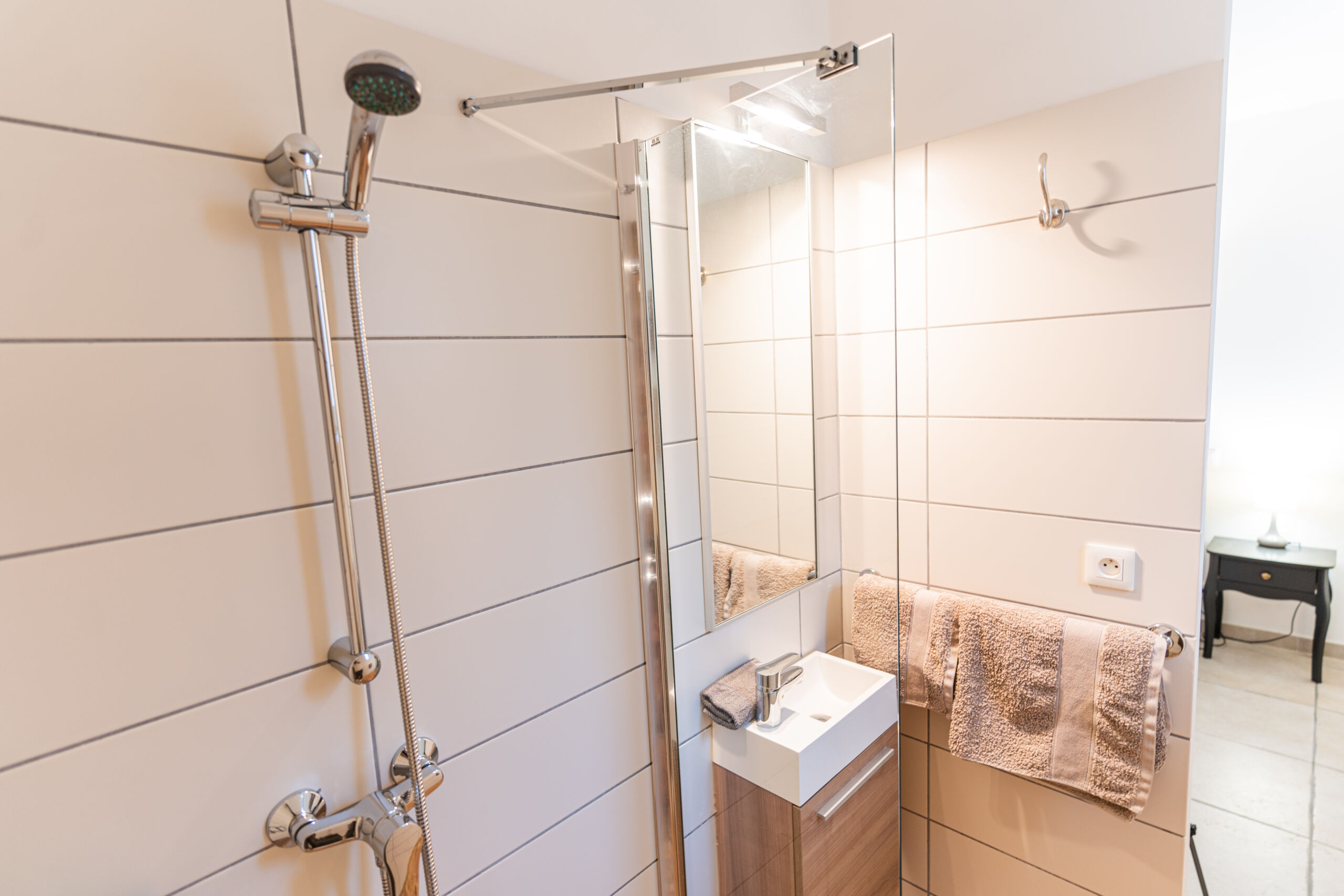 – Bedroom 3: two 90 cm single beds, private bathroom with walk‑in shower