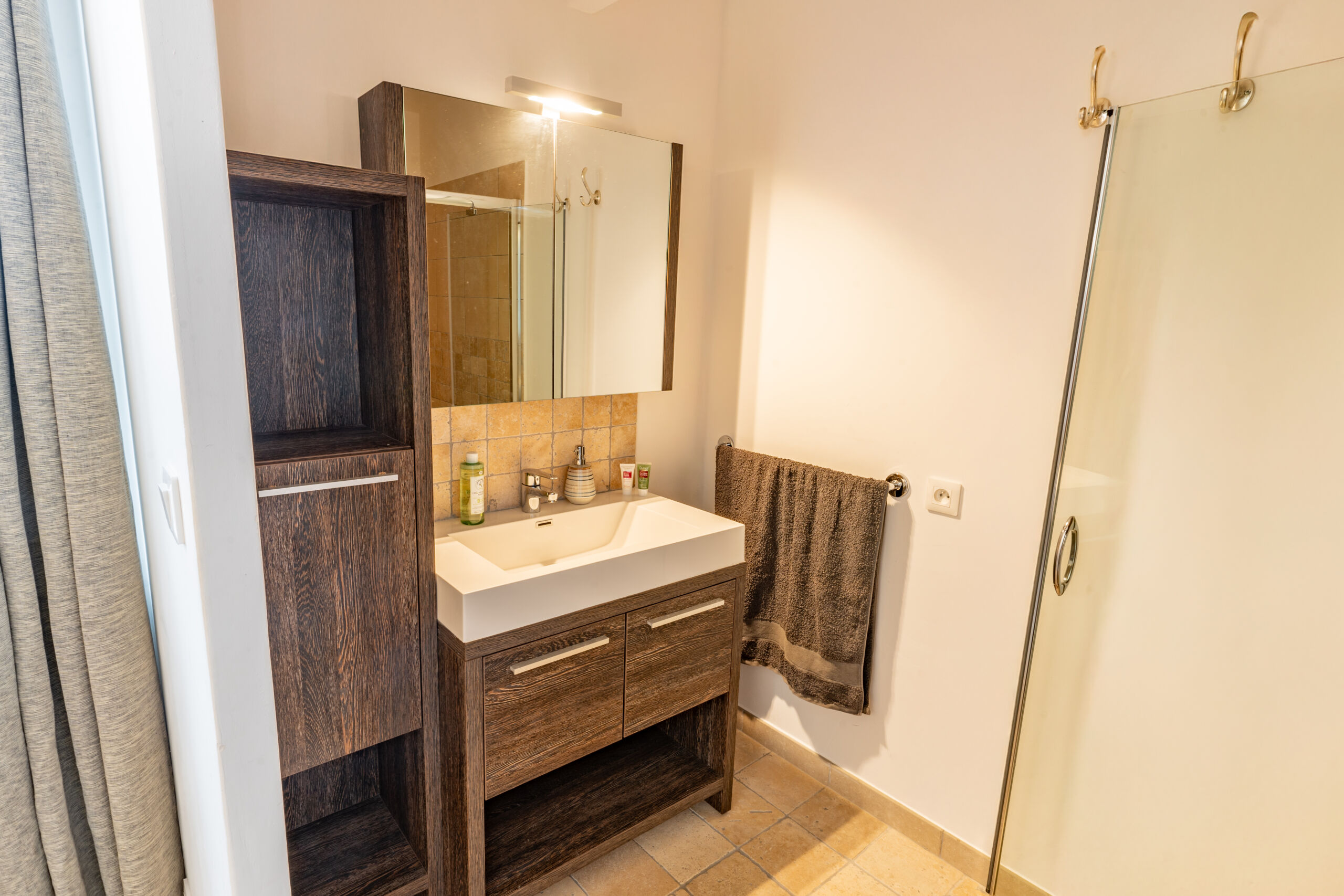 – 2 bedrooms with 160 cm double beds, each with a private bathroom.