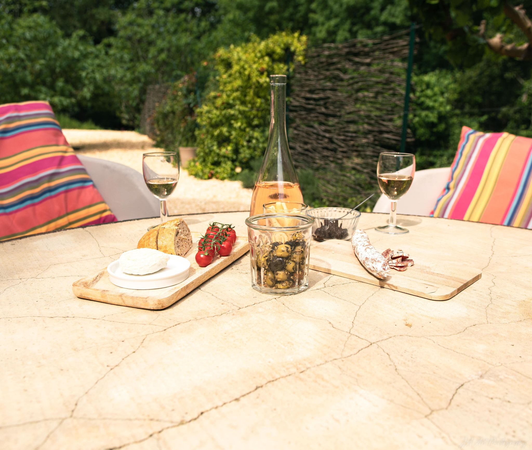 Our garden is full of flowers, with plenty of spots for dining or relaxing… Fancy challenging us on the pétanque court?