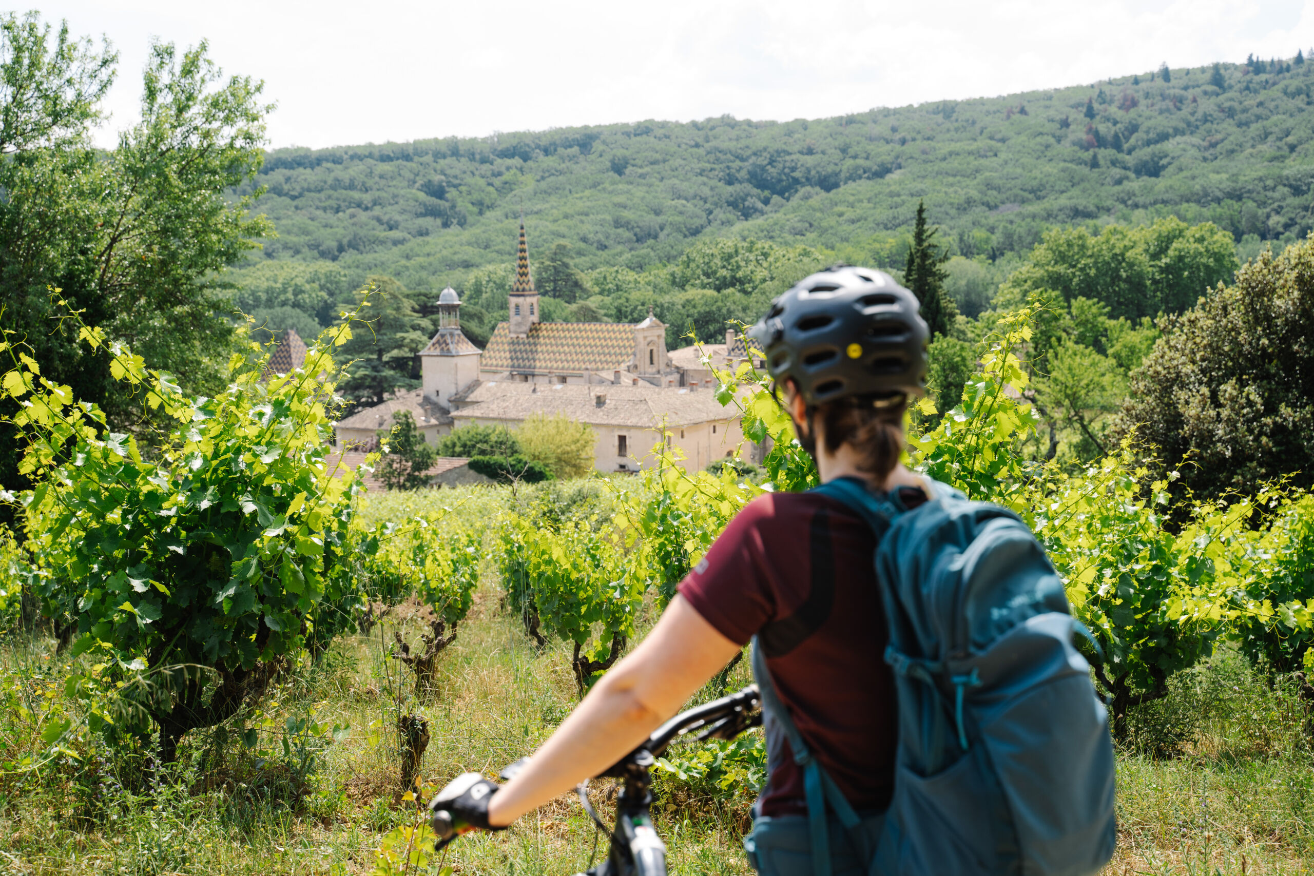 Le parcours passe par les villages de Salazac et Saint Julien de Peyrolas et la Chartreuse de la Valbonne dans son écrin naturel. Rouler à l’ombre et à la fraîcheur de la forêt de la Valbonne en apercevant la vallée du Rhône.