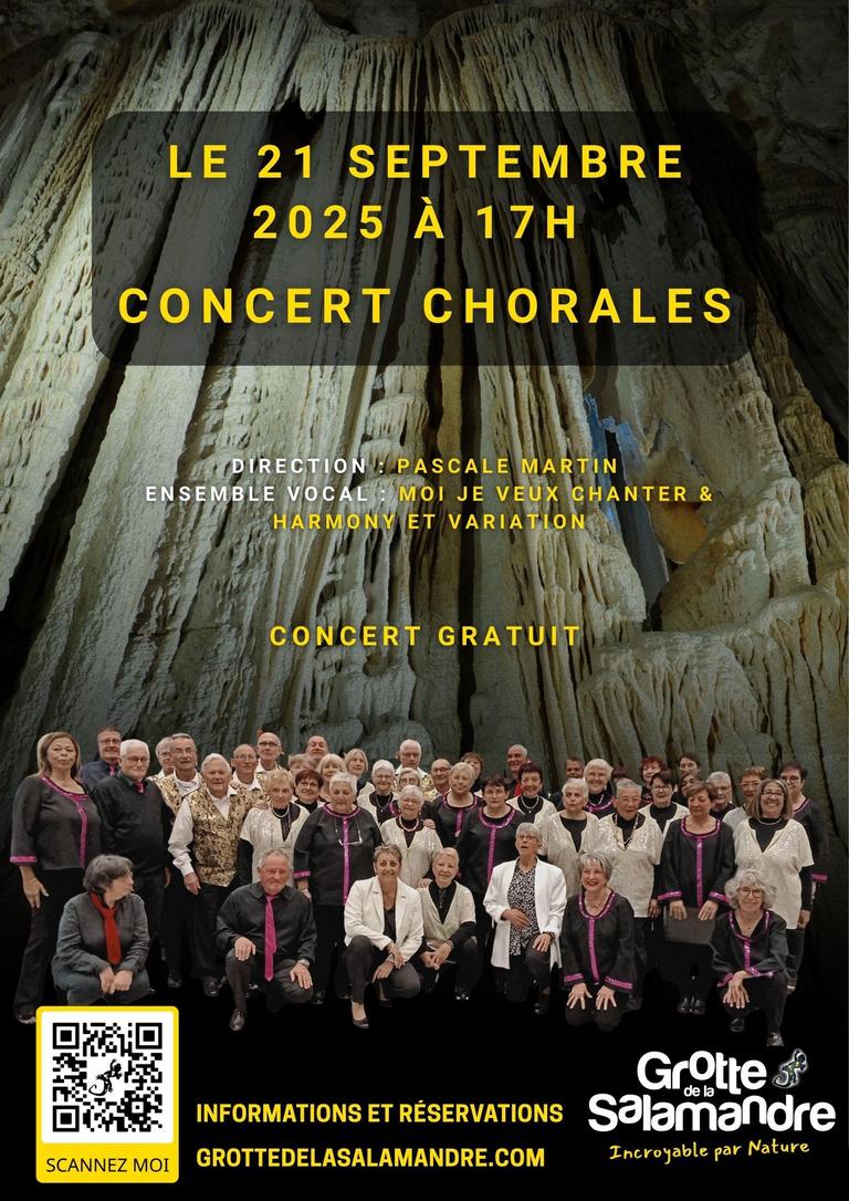 À l’occasion des Journées du Patrimoine, la Grotte de la Salamandre accueille un moment musical unique : un concert choral réunissant près de 50 choristes des ensembles Moi Je Veux Chanter (Bessèges) et Harmony et Variation (Saint-Hilaire-de-Brethmas), sous la direction de Pascale Martin.