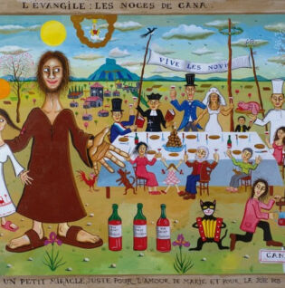 Dans la série des Évangiles, réalisée entre 2006 et 2010 et à laquelle est consacrée l’exposition, il retrouve les couleurs du Jardin des délices du peintre flamand et c’est sur un ton libre et truculent qu’il transmet le message des Apôtres.