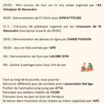 Au programme : mini tournoi de foot, démonstrations sportives (fit stick, danse, gym), concours de pétanque, jeux pour enfants, chasse au trésor, jeux en bois, ping-pong, jeux de société, ateliers créatifs…
