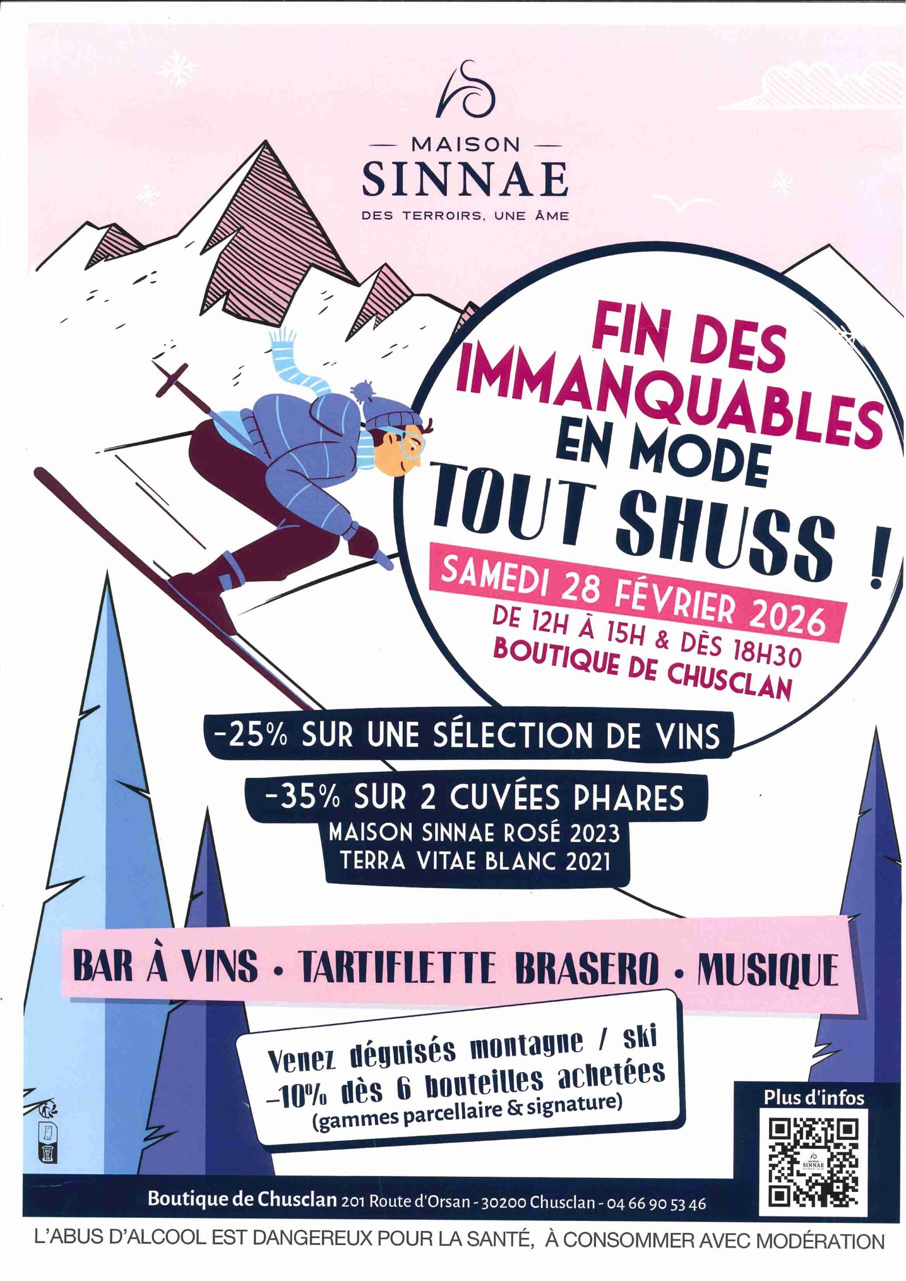 Que vous soyez amateur de bons vins, gourmand ou simplement en quête d’un moment chaleureux, Tout schuss est l’occasion parfaite de mêler plaisir, convivialité et bonnes affaires.