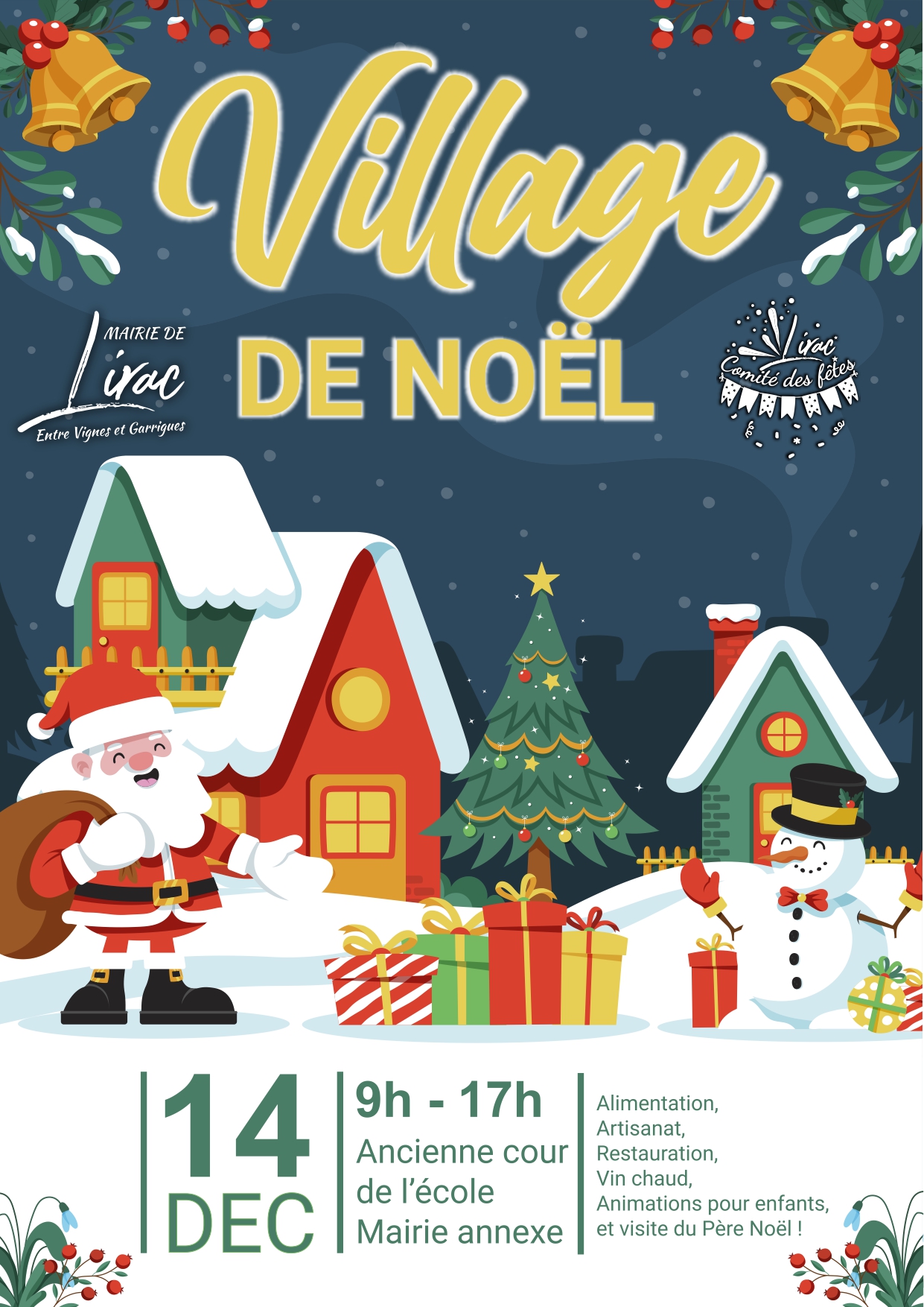retrouvez l’ambiance des marché de Noël du Sud de la France à Lirac avec des stands d’alimentation, d’artisanat, de restauration et des animations pour enfants avec la venue du Père Noël