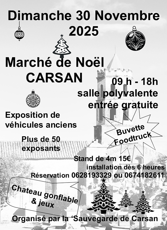 Une belle façon commencer la saison des fêtes de fin d’année avec le marché de noël de Carsan. Une cinquantaine d’exposants vous attendent : créateurs, artisans producteurs