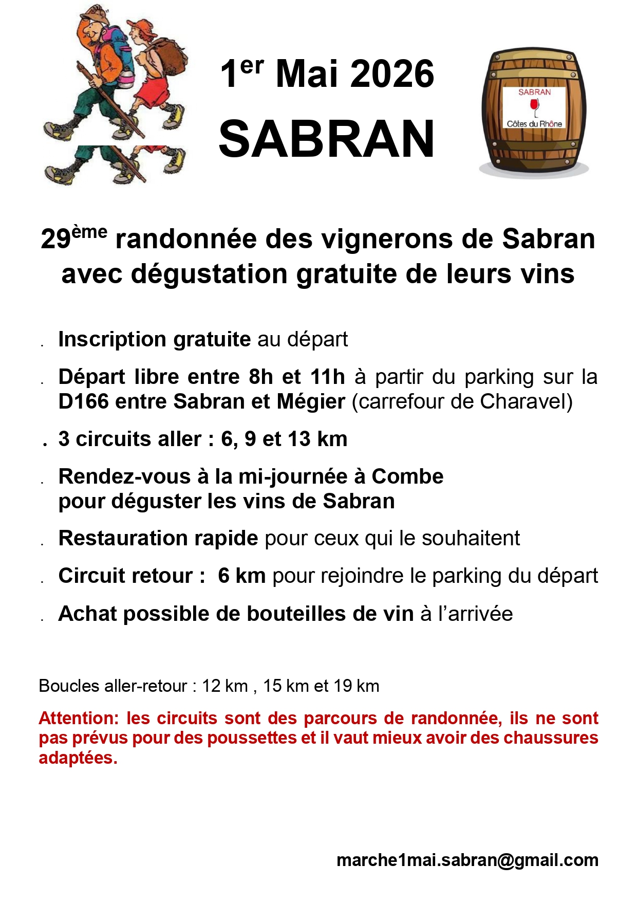 Le départ se fait entre 8h et 11h à partir du parking près du village de Sabran (une signalétique guidera les participants vers le parking).