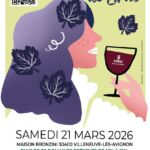 Le Salon des Vins de Lirac revient le samedi 21 mars 2026, de 10h à 19h, à la Maison Bronzini à Villeneuve lez Avignon. Plus de 30 domaines, dégustations, ateliers œnologiques et restauration dans une ambiance conviviale.