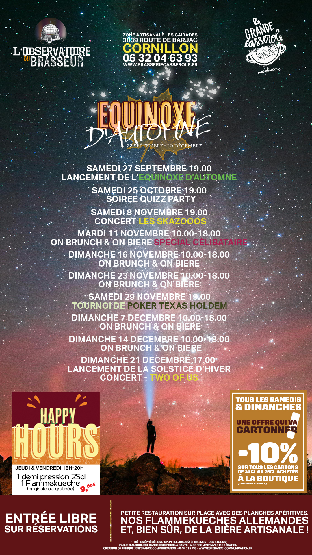 L’Observatoire du Brasseur, créateur et brasseur de la Grande Casserole, bière artisanale et locale accueille « Les Skazoooss », un néo groupe de musique pop-rock-funk qui vont ambiancer les levures de nos bières.
