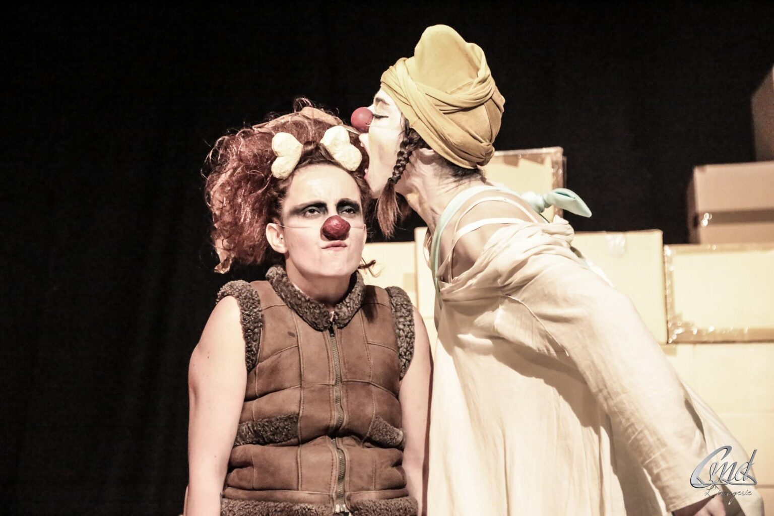 Luna et Caillou sont des étrangères: l’une a soif d’aventures et rêve de voler quand l’autre est castagneuse, organisée, bien plantée. L’autre vit dans du carton qu’elle empile pendant que l’une redessine le monde avec ses craies. Au fil de leurs extravagances, quelque chose d’indicible se crée entre elles, et s’épaissit. Amitié? Nécessité? Le lien va s’inventer de conflits en évidences. Ce qui surgit de la réunion de deux êtres est toujours surprenant, et là il s’agit de clowns!