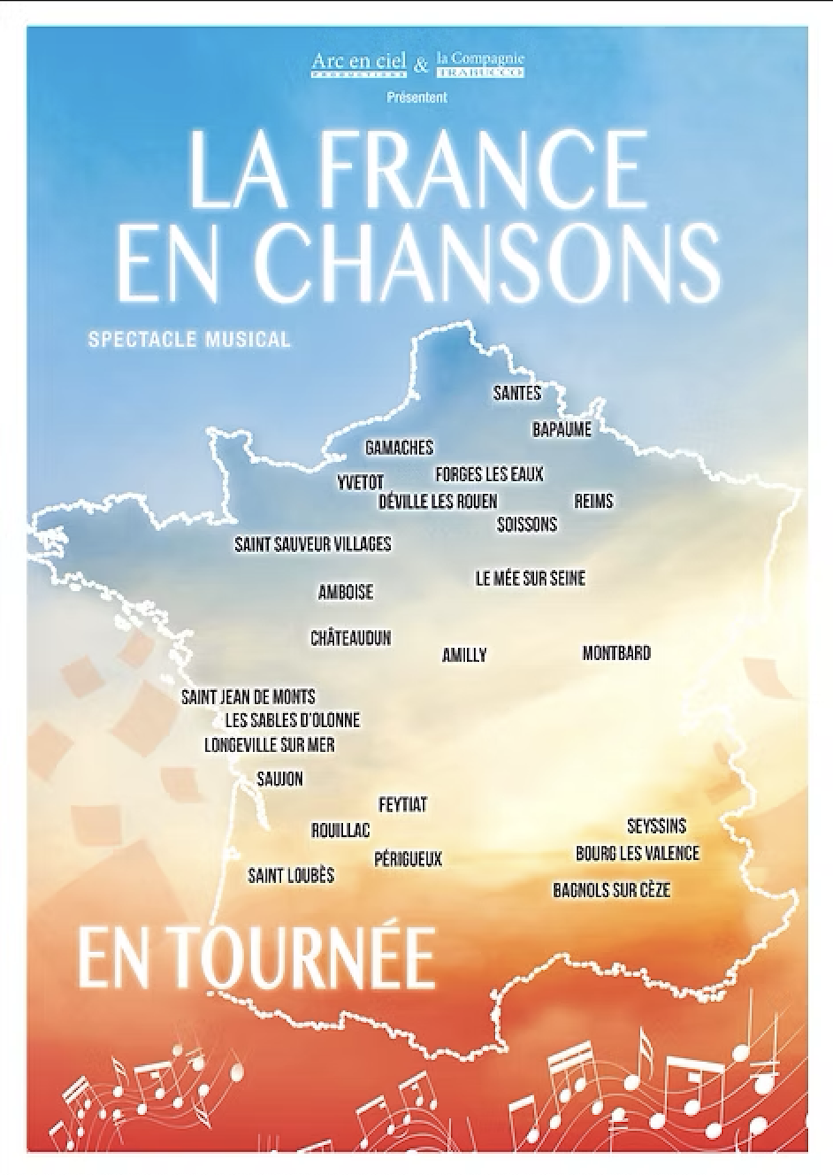 Un grand moment de spectacle frais, gai et entrainant avec un programme de chansons françaises comme vous les aimez. Une comédie pleine d’humour et d’émotions qui vous emmènera sur les routes de France pour un voyage musical inoubliable.