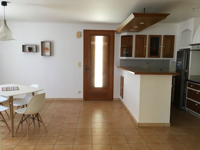 Situé dans une colline, à 20 minutes des Gorges de l’Ardèche ou de la Cèze, 45 minutes du Pont du Gard, d’Uzès ou d’Avignon, bel appartement de plain-pied avec entrée séparée, terrasse couverte et mobilier de jardin. Cuisine américaine toute équipée, coin repas, salon de télévision. Deux chambres comprenant 1 lit en 160 et 1 lit en 140 (linge de lit fourni). Moustiquaires fenêtres chambres. Salle de bain avec douche et vasque, WC séparé. Terrain privé d’environ 5 000m². Parking ombragé.