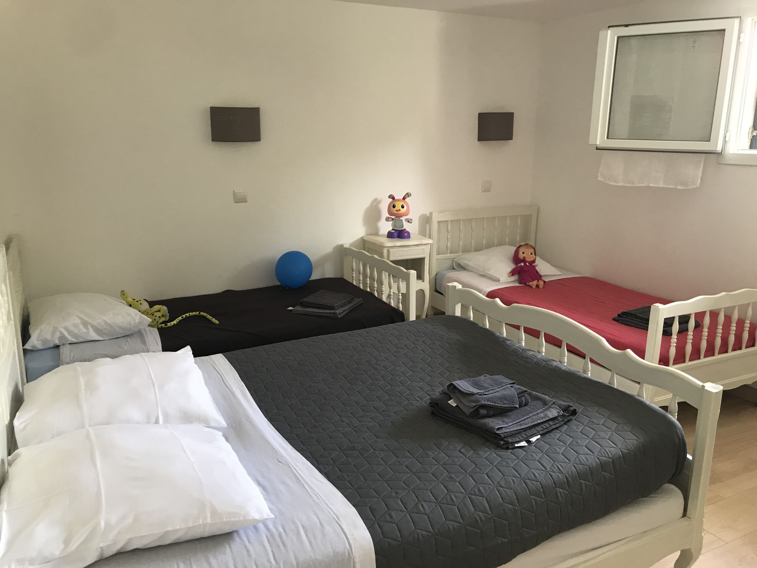 Il est composé de 3 chambres, une grande cuisine entièrement équipée pour cuisiner comme à la maison, un salon – salle à manger confortable, une bibliothèque et des jeux à disposition.