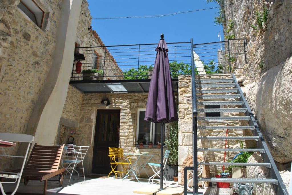 Ensemble de 3 appartements jumelés avec 2 espaces extérieurs pour 10 personnes au centre historique d’Aiguèze.