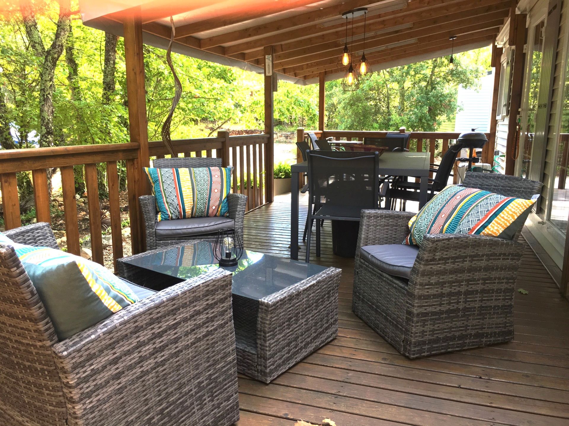 C’est dans un parc boisé de 4 hectares et à 5kms du “village de caractère” de Barjac, que vous pourrez profiter du confort de nos hébergements, mobil-homes et chalets sur de grands emplacements entre 200 et 340 m².