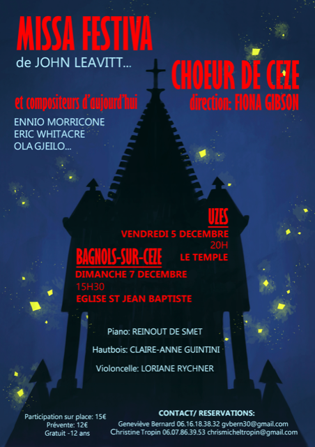 Onder leiding van Fiona Gibson presenteren het CHOEUR DE CÈZE met Reinout de Smet op piano en onze gasten, hoboïste Claire-Anne Giuntini en celliste Loriane Rychner, een programma 2025 gewijd aan hedendaagse koormuziek van hedendaagse componisten.