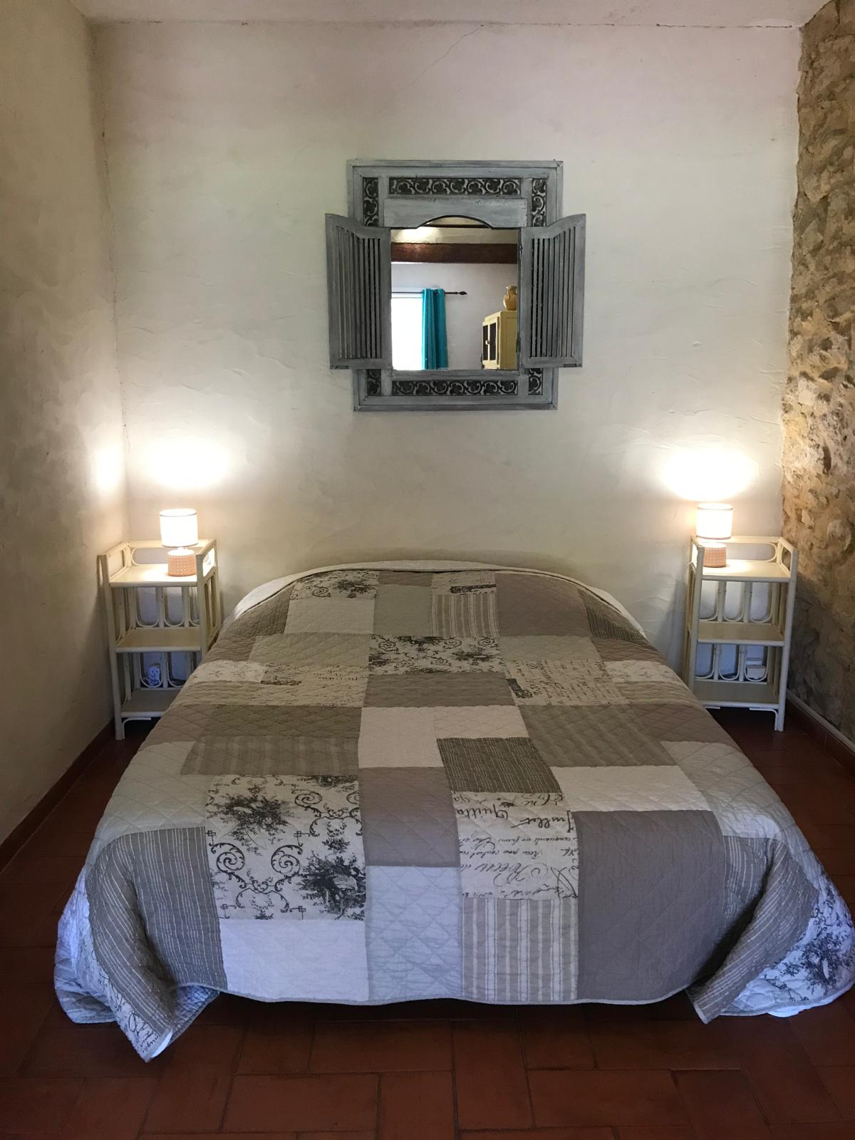 Het Thym‑gîte bestaat uit een slaapkamer met een bed van 160 cm, een uitgeruste keuken die uitkomt op een woonkamer en een rusthoek met een bed van 90 cm. Er is ook een badkamer met een wastafel, een douche en een apart toilet.