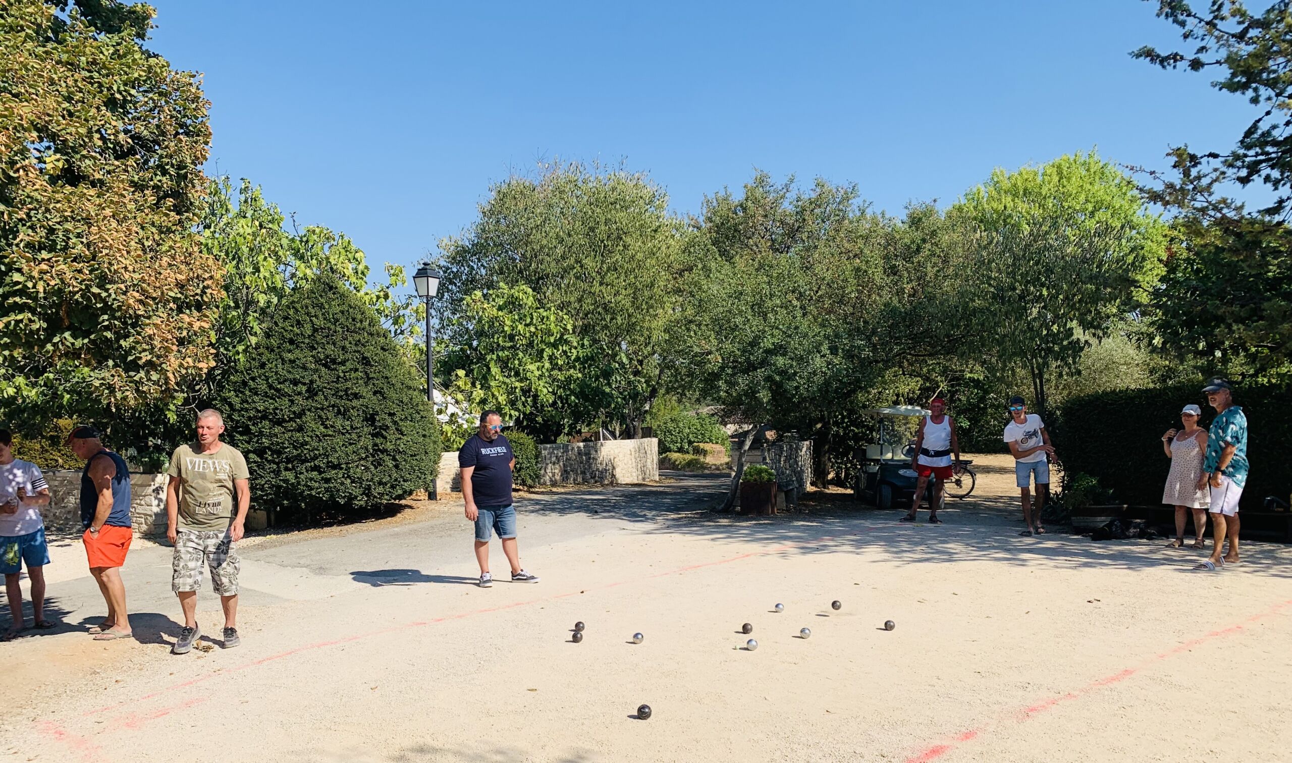 Op het terrein: kinderspeelplaats, voetbalveld, jeu-de-boulesbaan, pingpongtafel en tafelvoetbal.