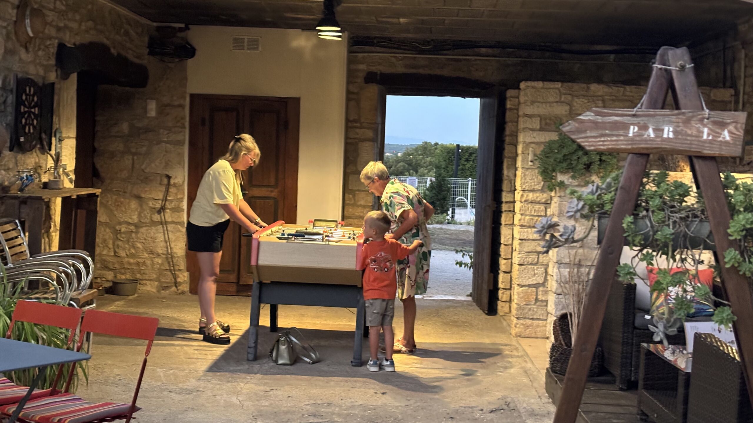 Op het terrein: kinderspeelplaats, voetbalveld, jeu-de-boulesbaan, pingpongtafel en tafelvoetbal.
