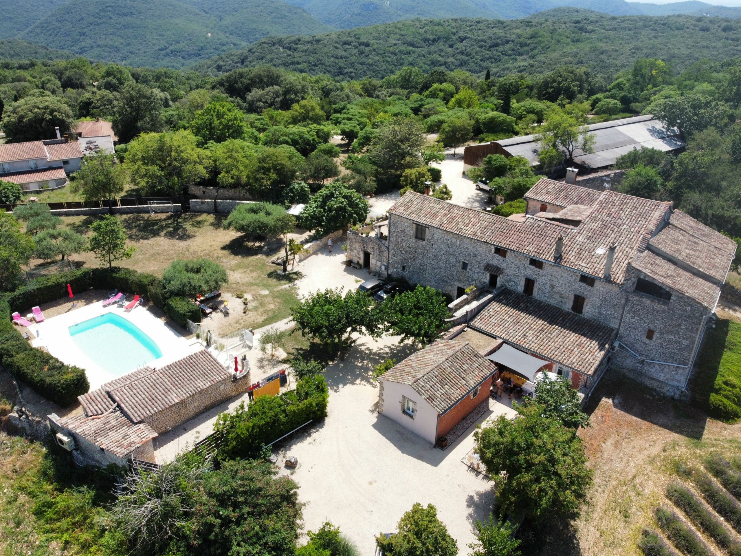 44 m² vakantiehuis voor 2 personen, gelegen op de bovenverdieping van onze mas. Met een privé overdekt terras, een rustige omgeving, een verwarmd zwembad en toegang tot een privéstrand aan de rivier “Cèze”, op slechts 2 km afstand.